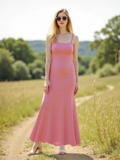 Women’s Solid Color Cami Dress Sleeveless Spaghetti Strap Bodycon Long Dress Summer Casual Party Dresses